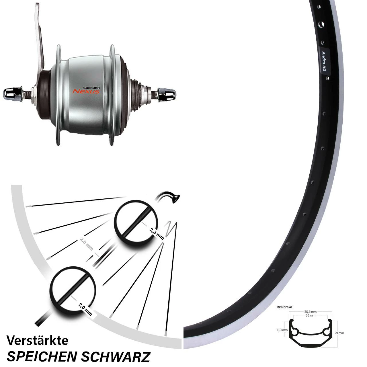 20 Zoll Ryde Andra 40 Hinterrad Shimano Nexus 8-Gang Rücktritt mit verstärkten Speichen