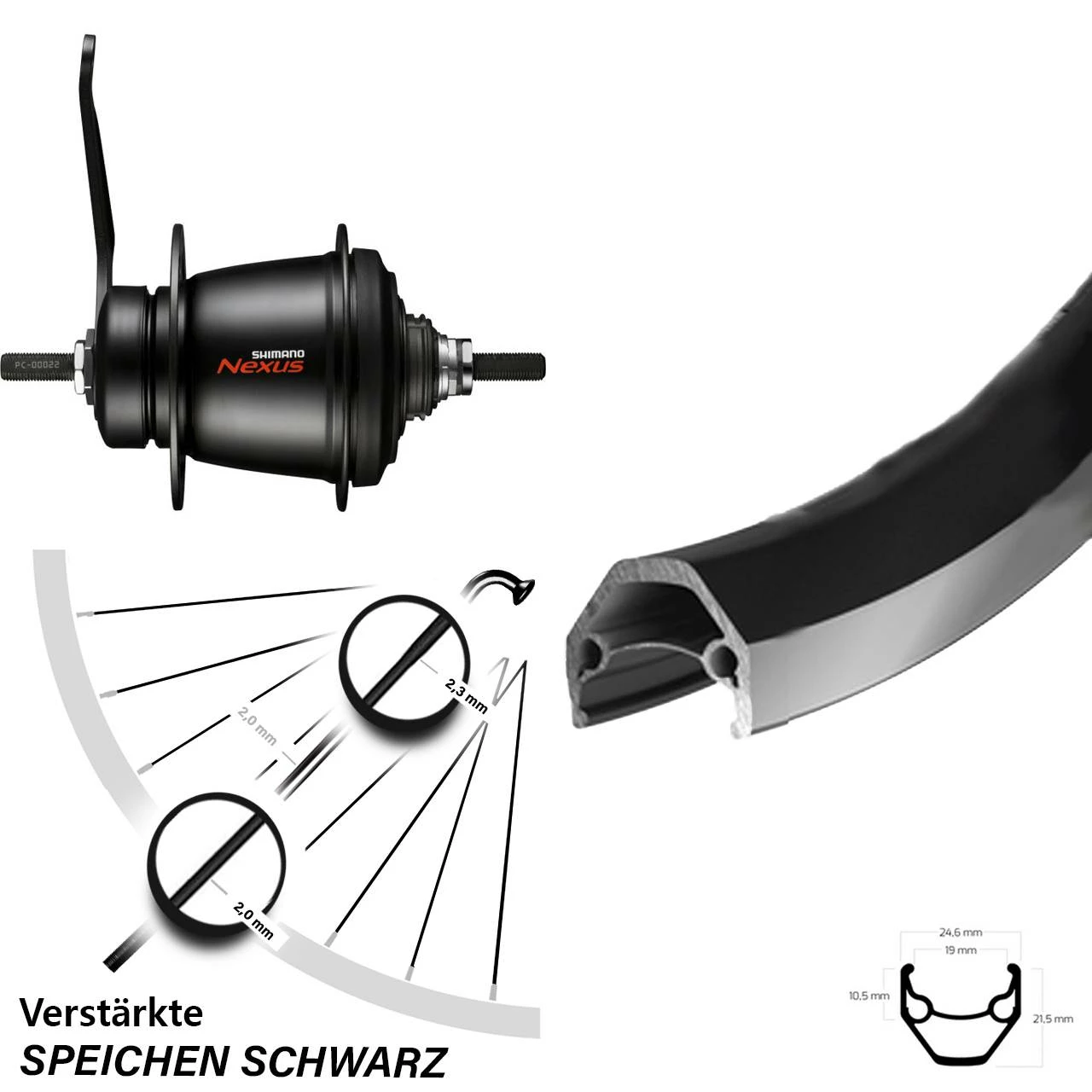 - ein Shimano Nexus Schaltgriff Farbe schwarz oder Schalthebel Farbe schwarz (optional)