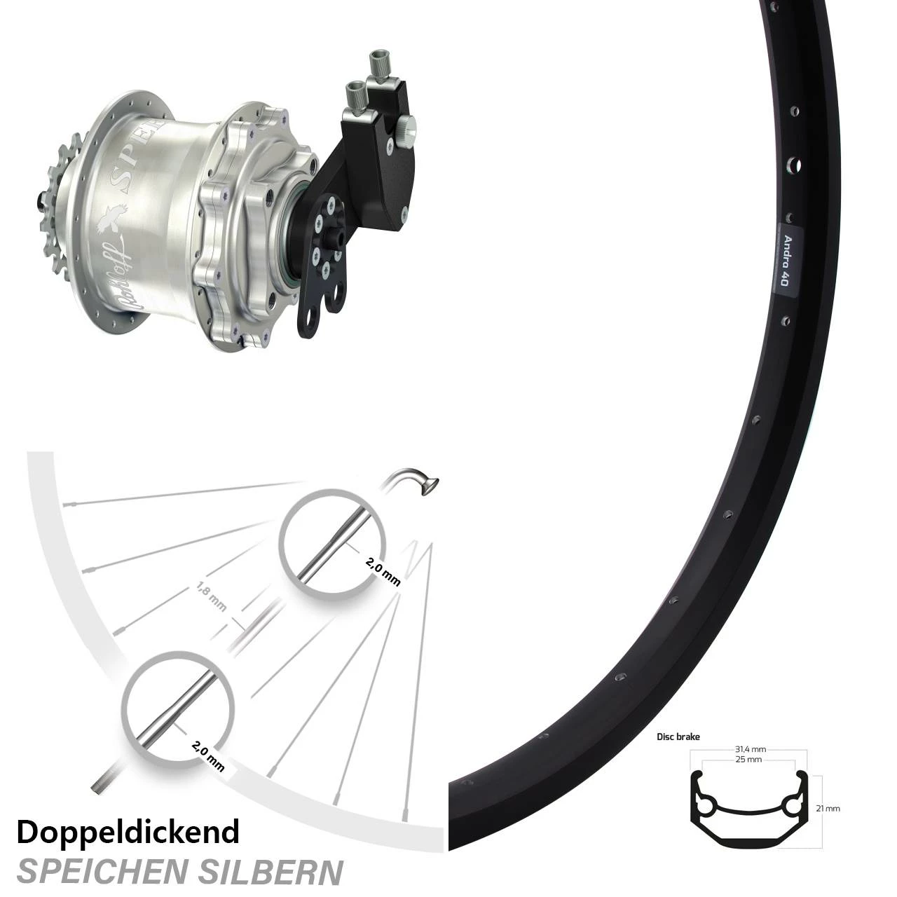 Technische Daten Hinterrad Ryde Andra 40 Disc schwarz und Nabe Rohloff Speedhub 500/14 CC DB silbern