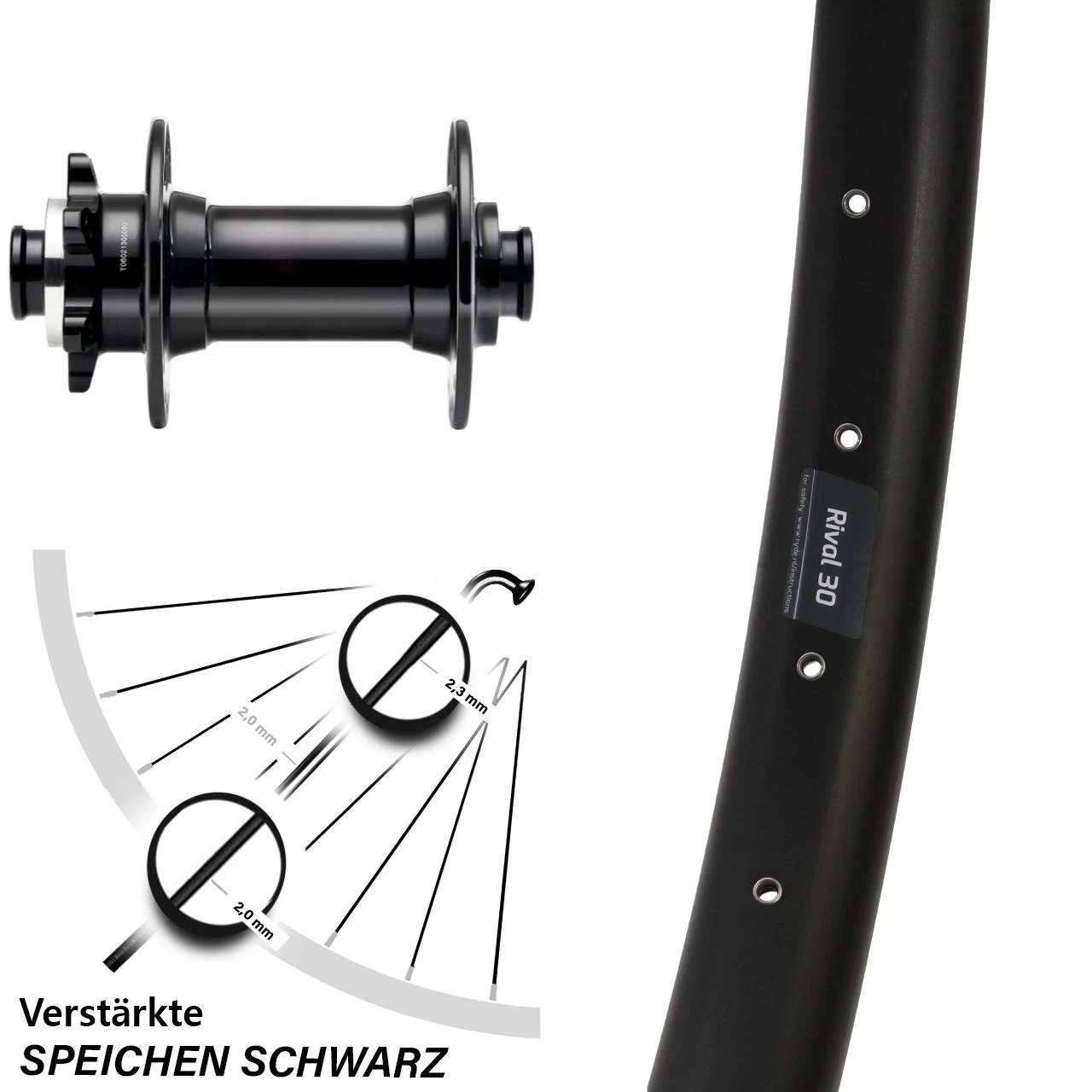 Technische Daten Vorderrad Ryde Rival 30 Disc schwarz mit Nabe Novatec D341-B15 Boost schwarz