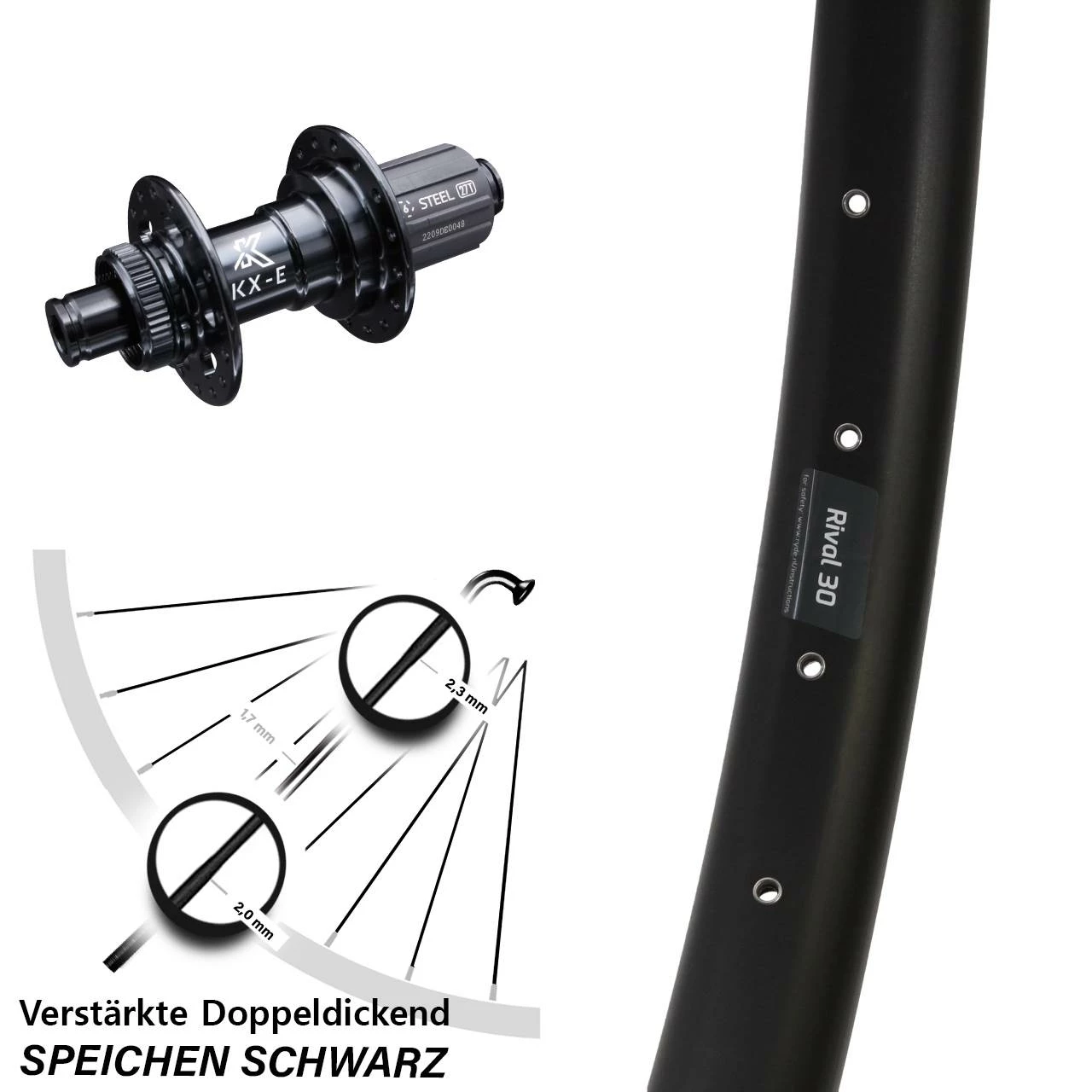mit empfohlener Reifenbreite 55-75 mm - Nabe: KX-E Hinterradnabe Centerlock 12/142 mm Shimano 11-fach schwarz