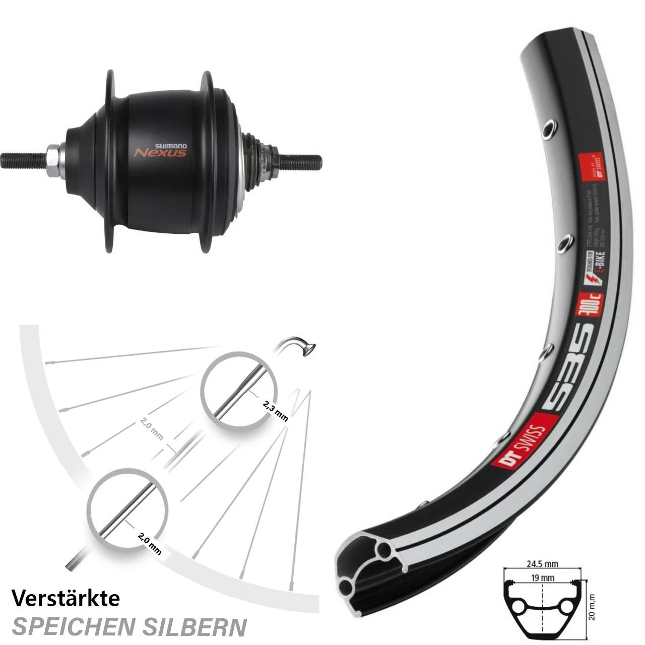 Produktbeschreibung 26 Zoll DT Swiss Hinterrad Shimano Nexus 8-Gang Premium