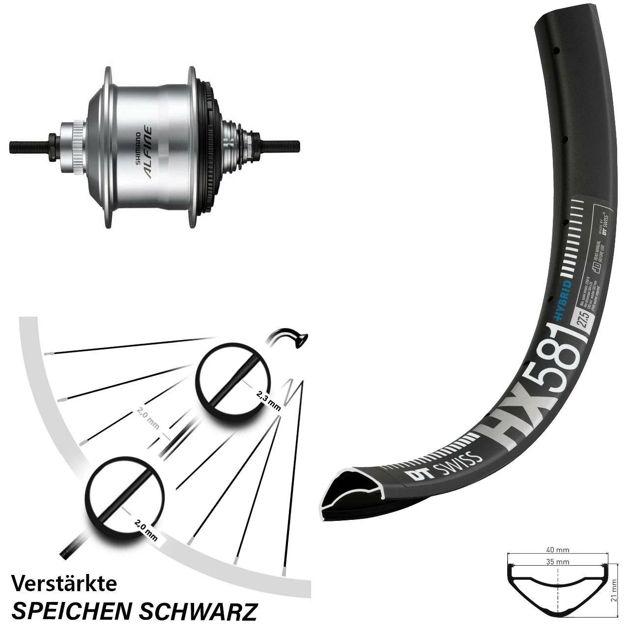 Produktbeschreibung 27,5 Zoll DT Swiss HX 581 Hinterrad mit Shimano Alfine silbern 11-Gang