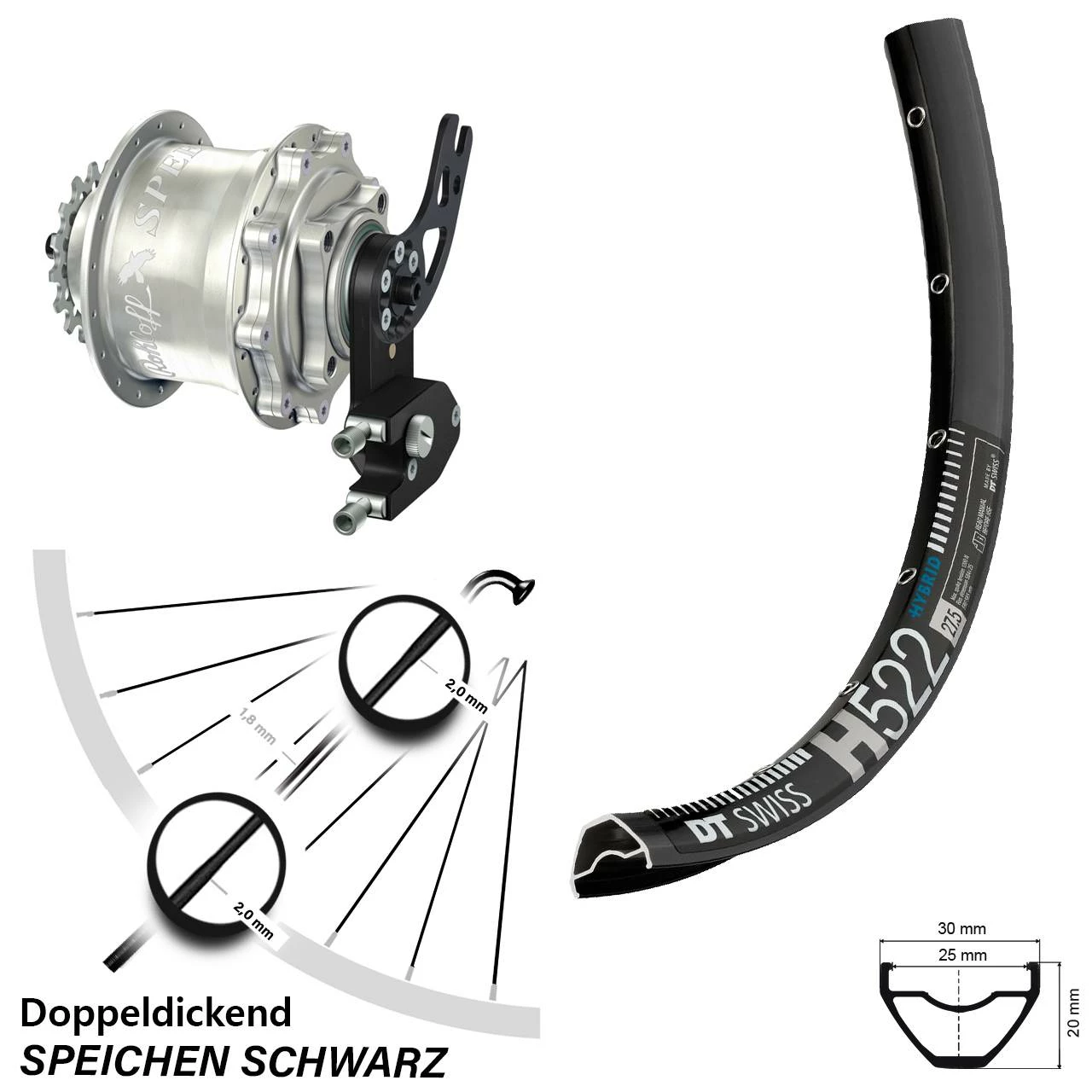 - Speichenflanschabstand: 58 mm, symmetrisch