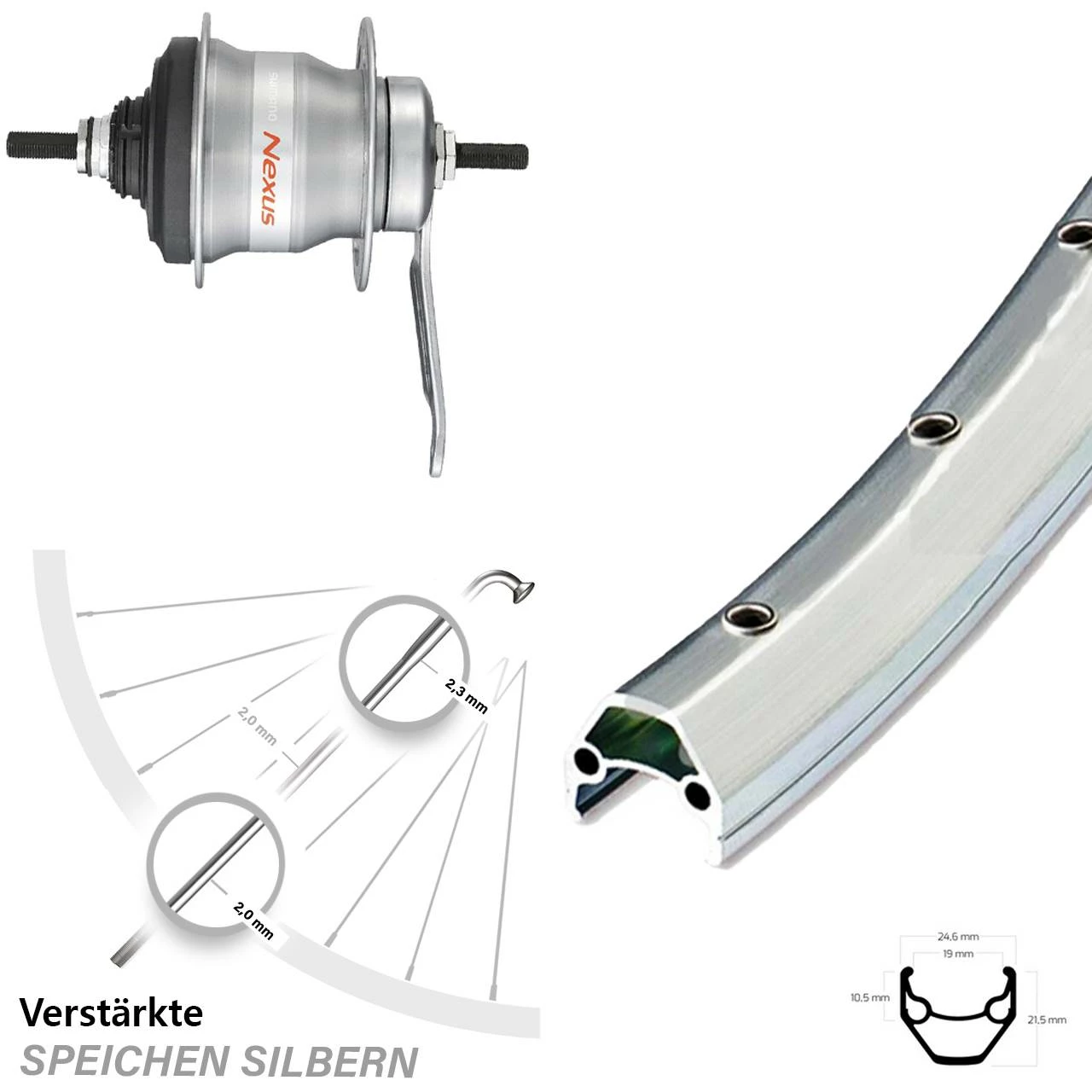 Technische Daten Hinterrad Ryde ZAC 2000 Felgenbremse silbern und Nabe Shimano Nexus 7-Gang SG-7C30 silbern