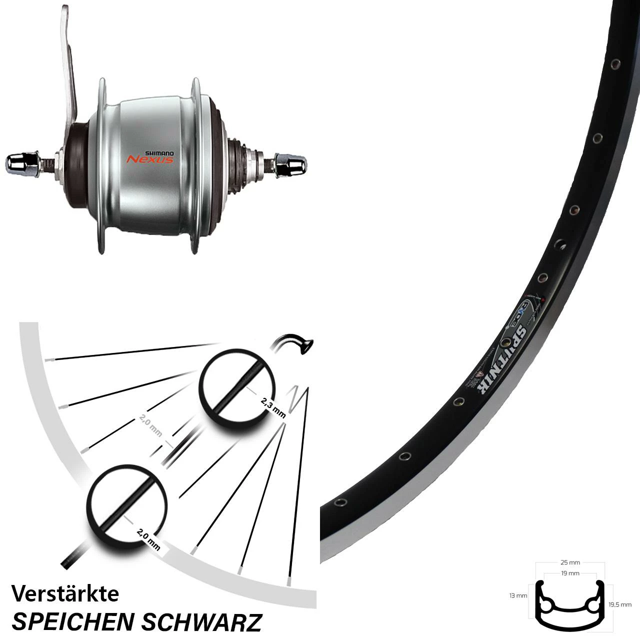 Produktbeschreibung Hinterrad 28 Zoll Shimano Nexus 8-Gang Rücktritt Ryde Sputnik schwarz