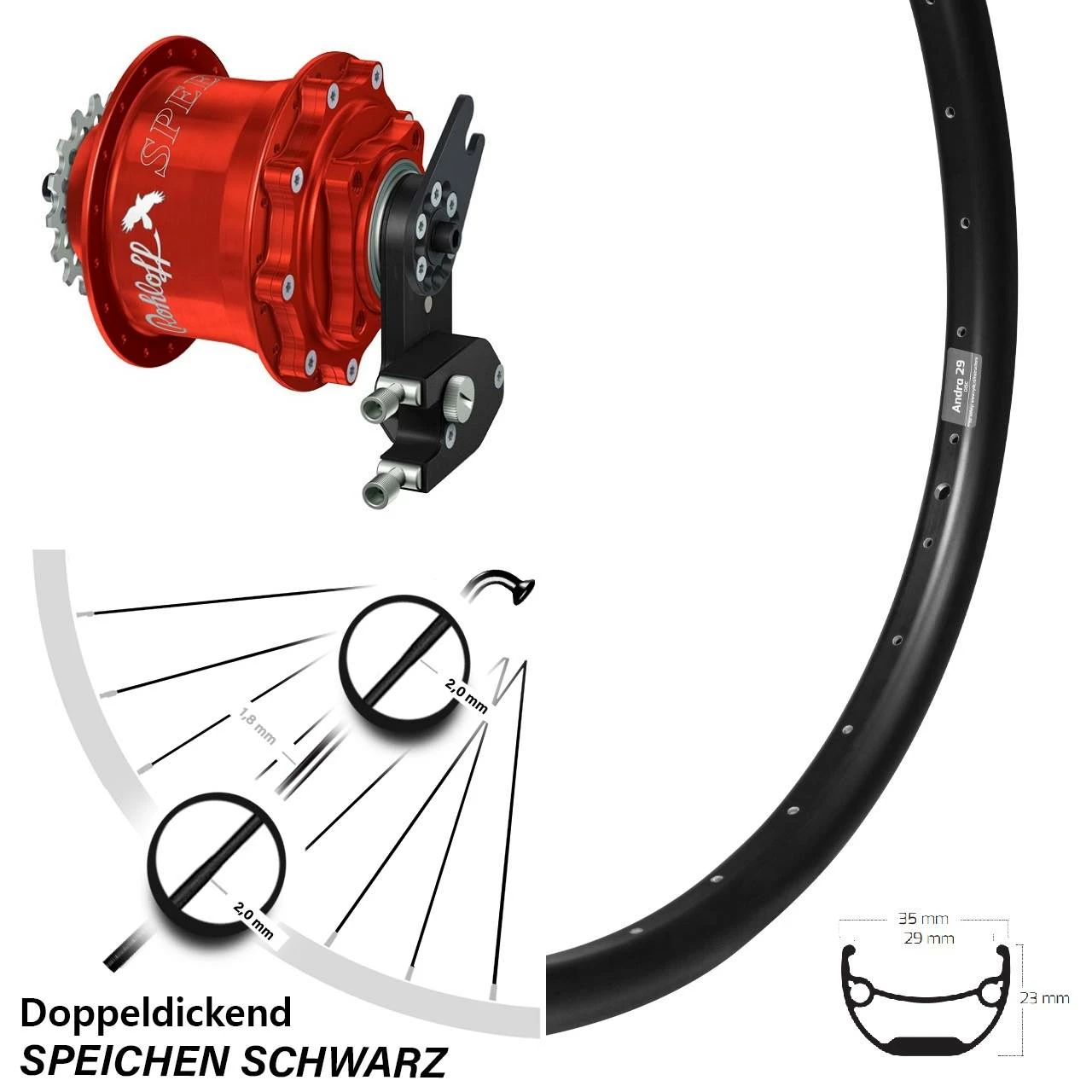 - Hinterrad 29 Zoll, 29+ Zoll Ryde Andra 29 schwarz mit Getriebenabe Rohloff Speedhub 500/14 rot