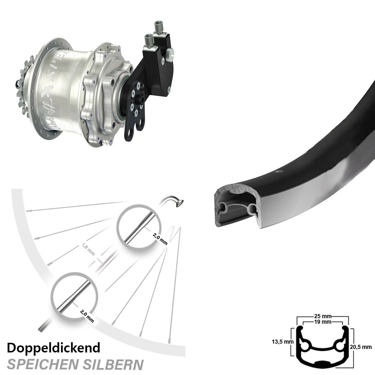 - Speichenflanschabstand: 58 mm, symmetrisch