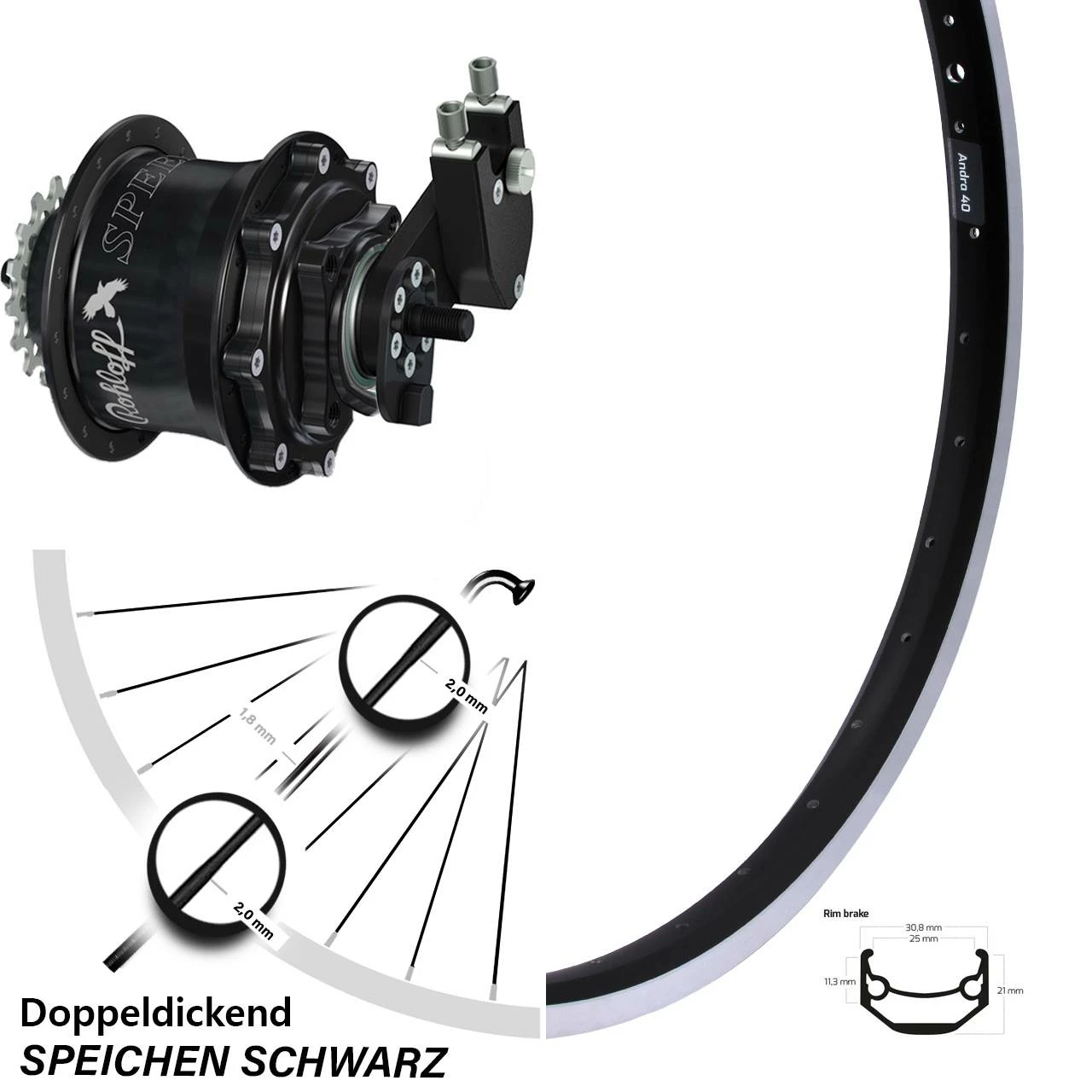 - Hinterrad 28 Zoll, 29 Zoll Ryde Andra 40 schwarz mit Getriebenabe Rohloff Speedhub 500/14 TS DB OEM schwarz schwarz