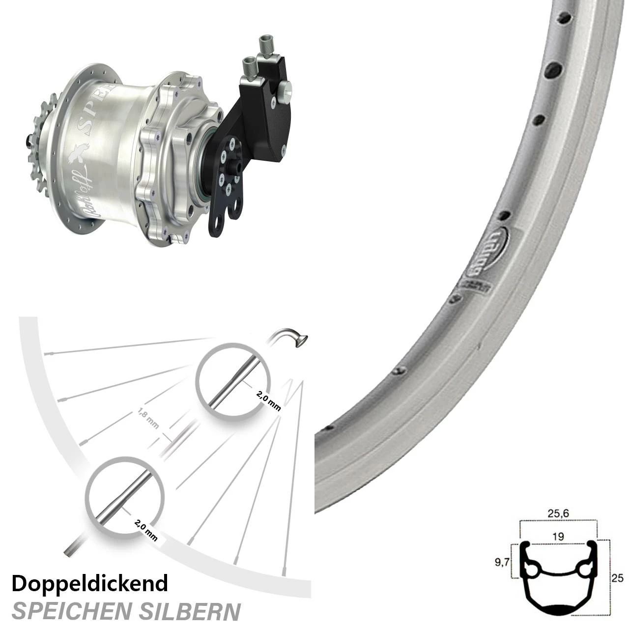 Technische Daten Hinterrad Ryde Andra 10 Felgenbremse silbern und Nabe Rohloff Speedhub 500/14 CC DB silbern
