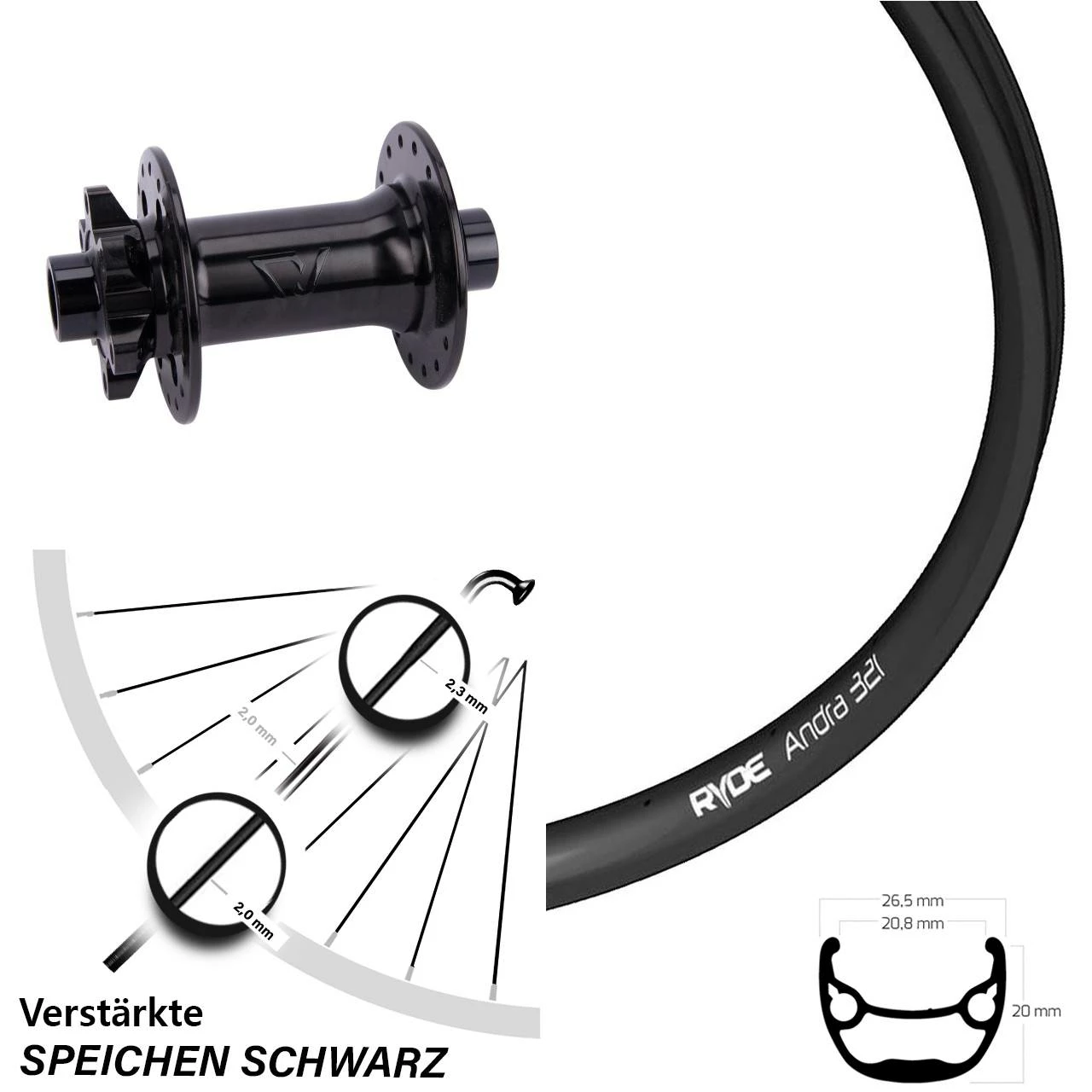 Technische Daten Vorderrad Ryde Andra 321 Disc schwarz mit Nabe Formula Boost 6-Loch 110 mm schwarz