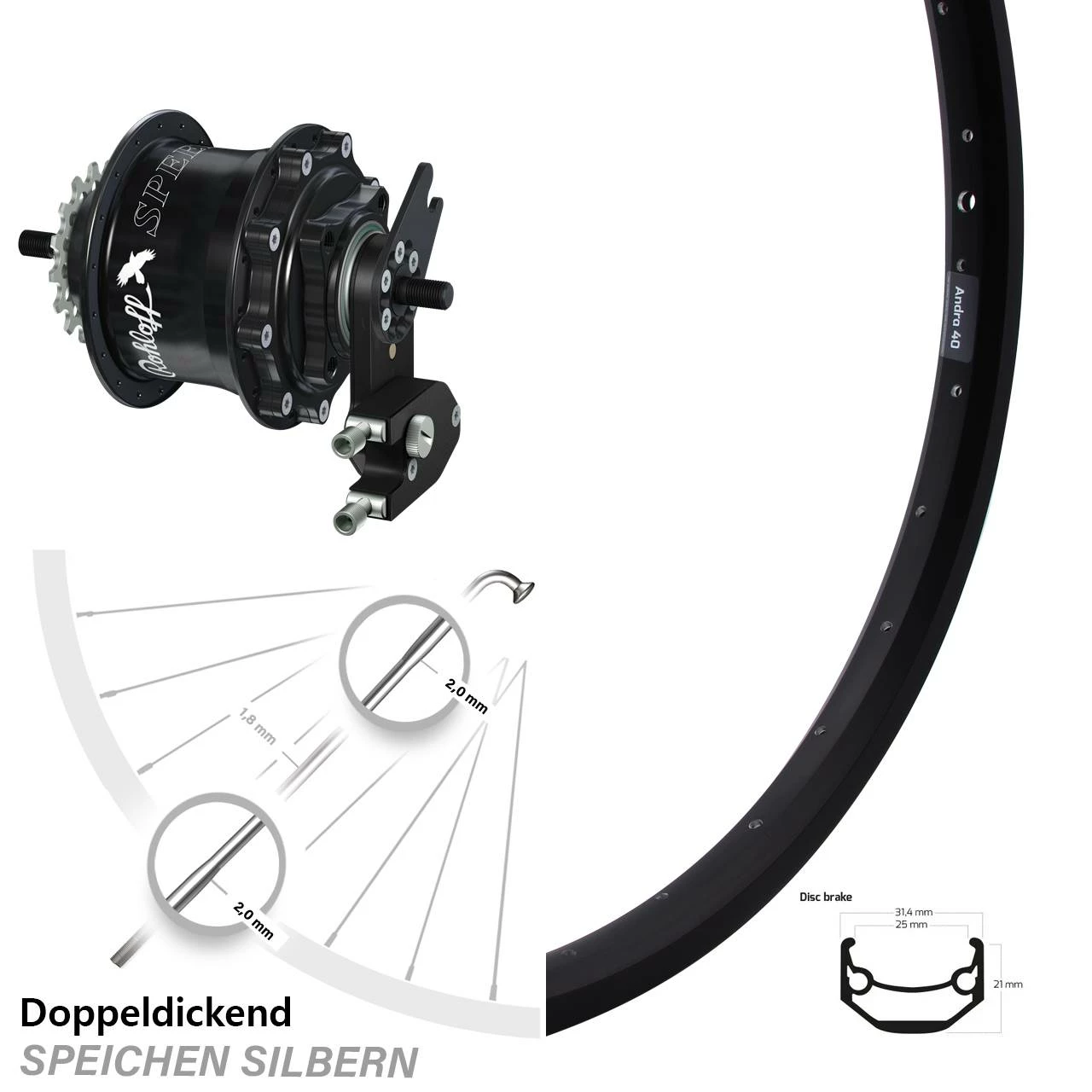Technische Daten Hinterrad Ryde Andra 40 Disc schwarz und Nabe Rohloff Speedhub 500/14 TS DB OEM2 schwarz