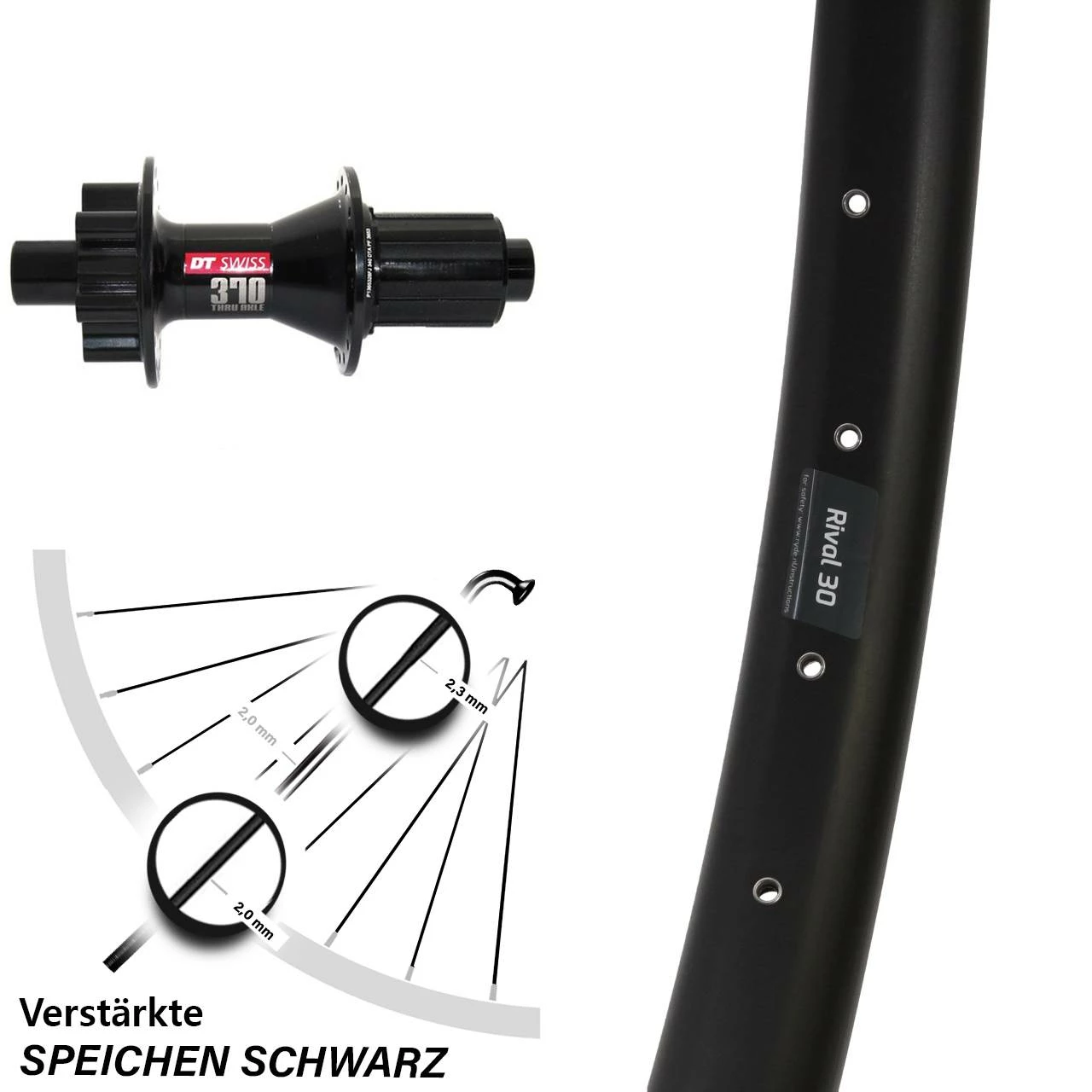 Technische Daten Hinterrad Ryde Rival 30 Disc schwarz und Nabe DT Swiss 370 Disc 6-Loch Shimano 12/142