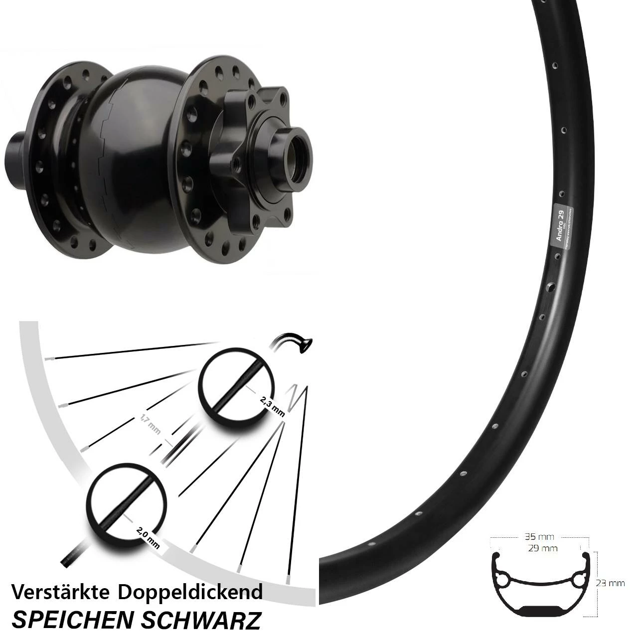 - Vorderrad 27,5 Zoll, 27,5+ Zoll Ryde Andra 29 schwarz mit Nabendynamo SON 28-15 schwarz
